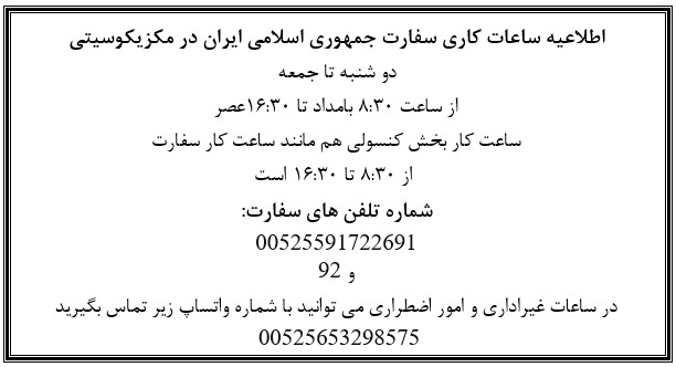 اطلاعیه ساعات کاری سفارت ایران در مکزیکوسیتی