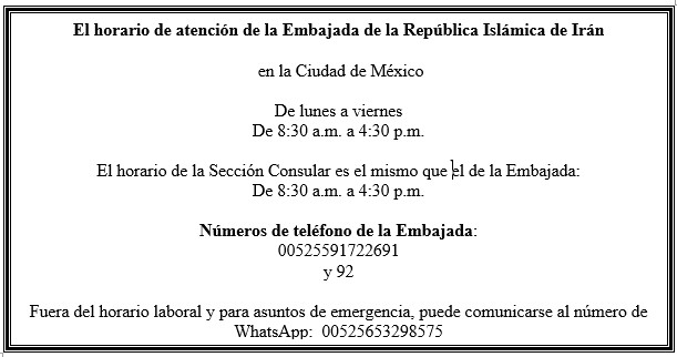 El horario de atención de la Embajada de Irán