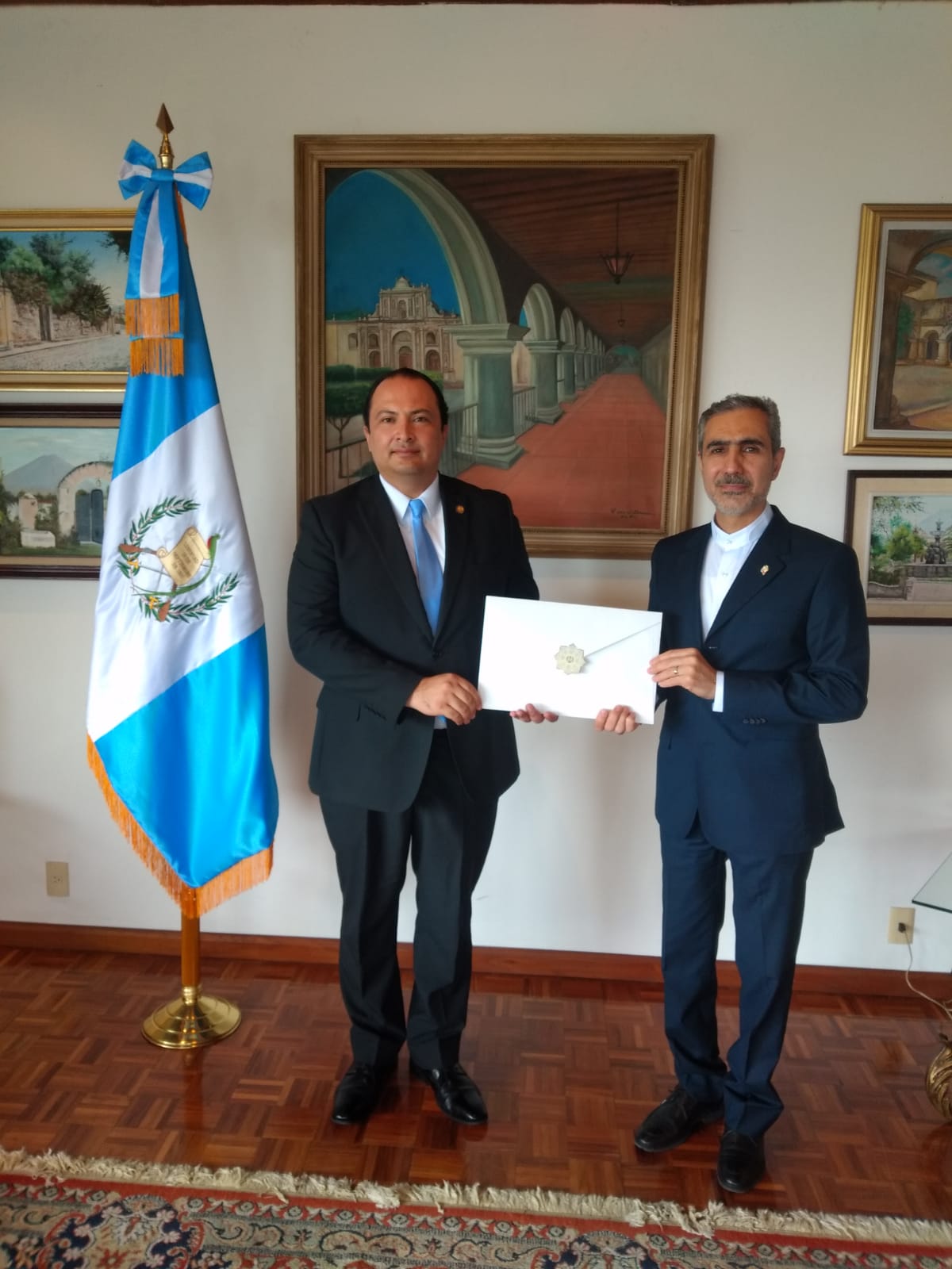 En 13 de Julio 2021 tuve el honor de presentar mis Copias de Estilo como Embajador de la R.I. de Irán concurrente para Guatemala ante el Canciller el Sr. Pedro Brolo en una reunión virtual.