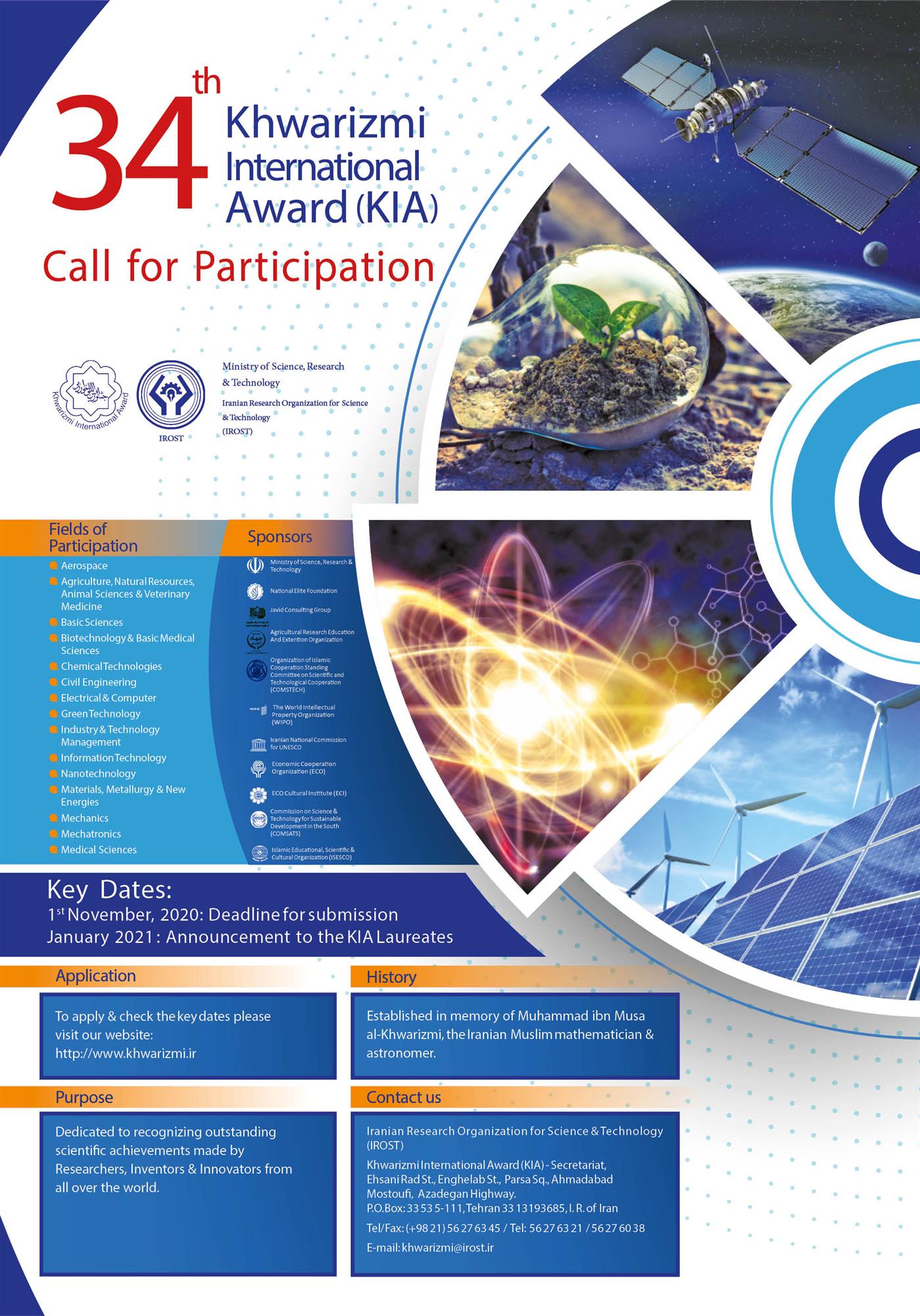 Los interesados tendrán la oportunidad de completar el formulario de inscripción y enviarlo a la Secretaría de Festival hasta el 1 Noviembre de 2020. Para mayor información, puede dirigirse a la página oficial www.Khwarizmi.ir .