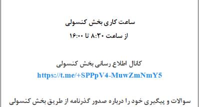 سوالات و پیگیری خود را درباره صدور گذرنامه از طریق بخش کنسولی مکزیک به آی دی تلگرام زیر ارسال نمایید: